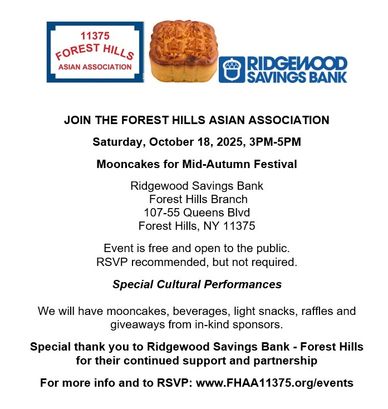 Please join the Forest Hills Asian Association (FHAA) for the following: